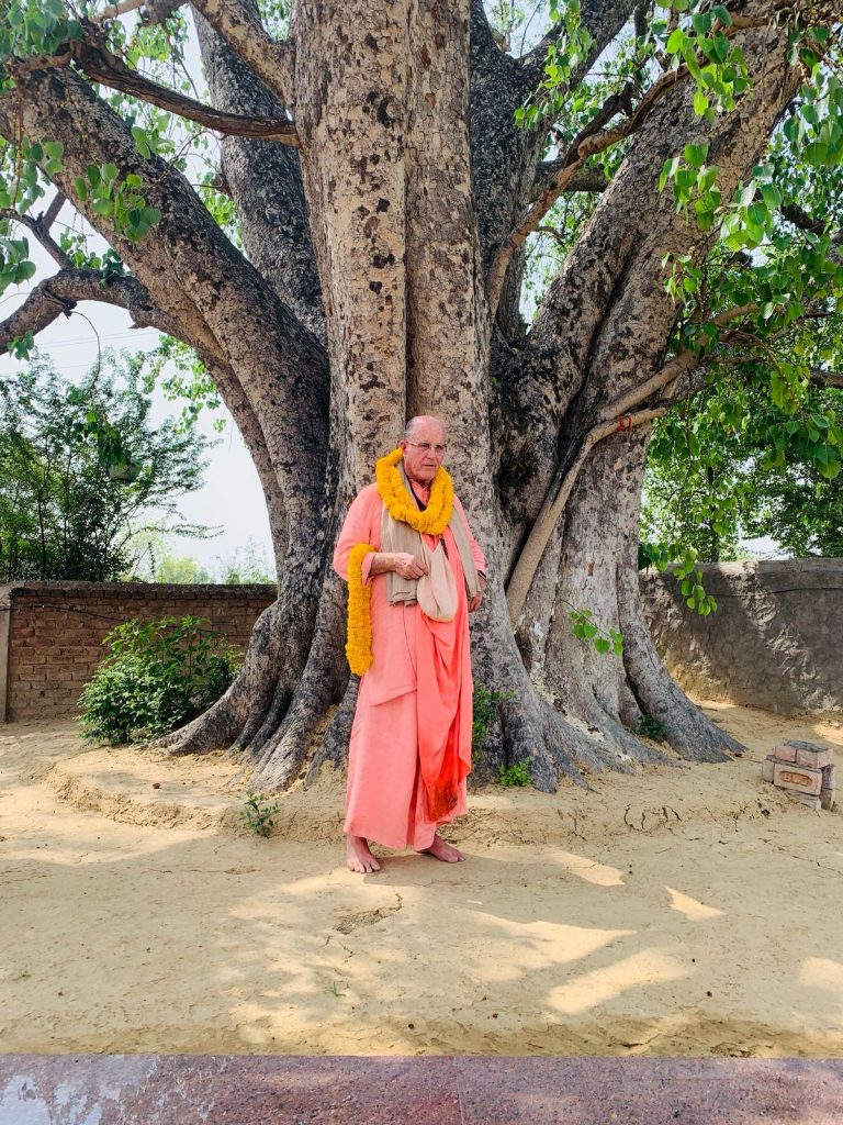 HH Indradyumna Swami under the shade and shelter of the Ashvattha (Pipal) Tree